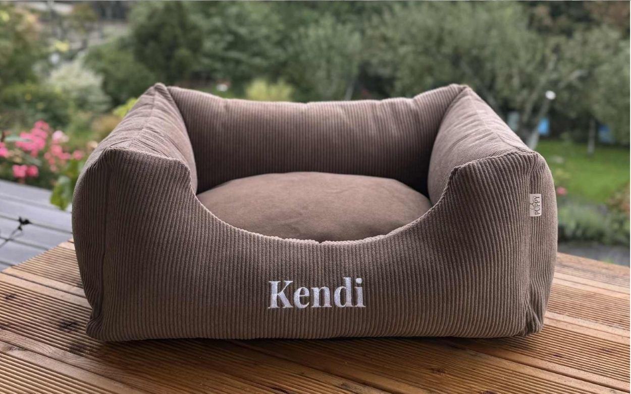 Legowisko Porto łączy wygodę i trwałość. Wykonane z eleganckiego sztruksu tapicerskiego, prezentuje się stylowo w każdym wnętrzu. Wypełnienie z wysokiej jakości kulki silikonowej zapewnia komfort i idealne dopasowanie do ciała psa. Zdejmowany pokrowiec ułatwia pranie, a możliwość personalizacji haftem imienia czyni Porto wyjątkowym dodatkiem dla Twojego pupila.