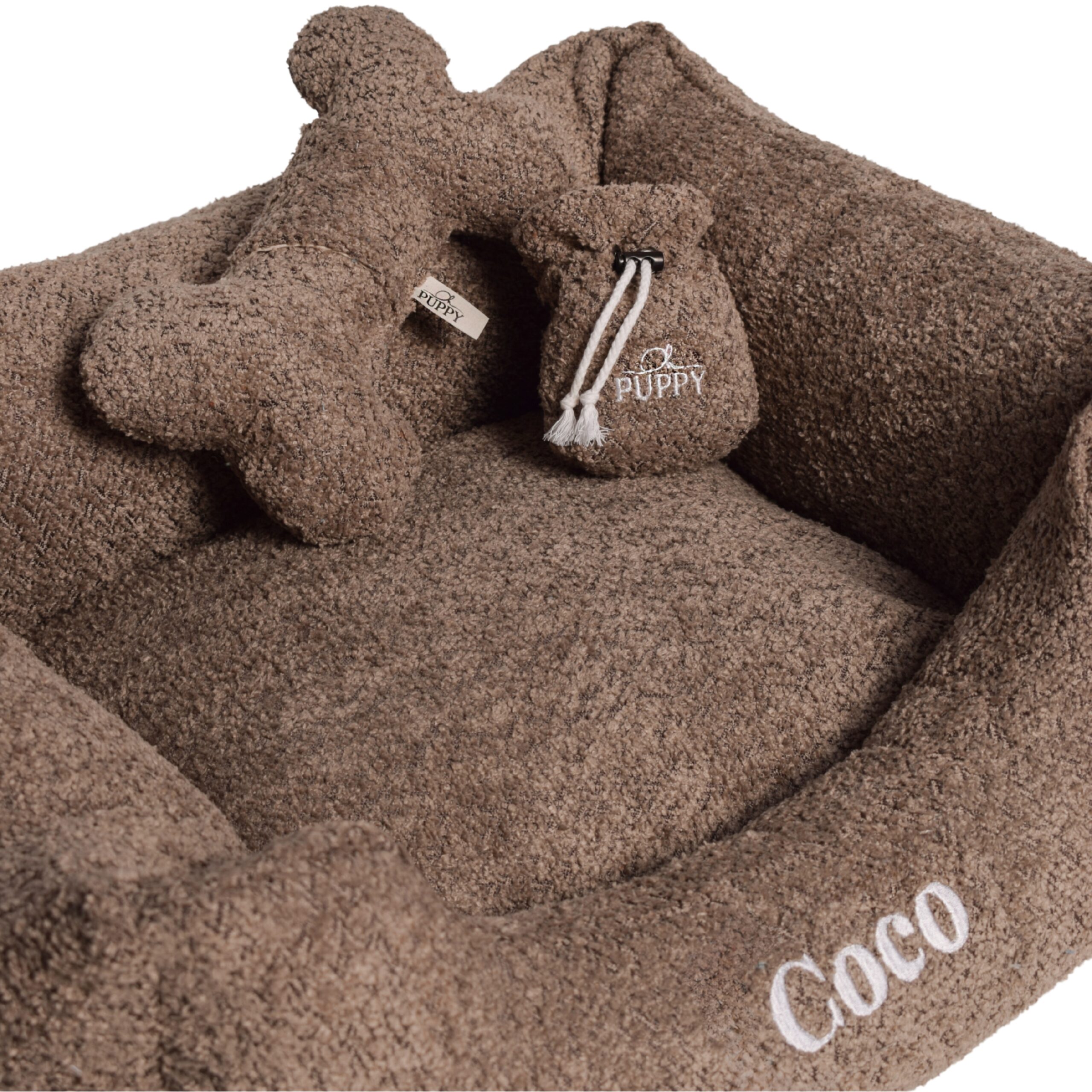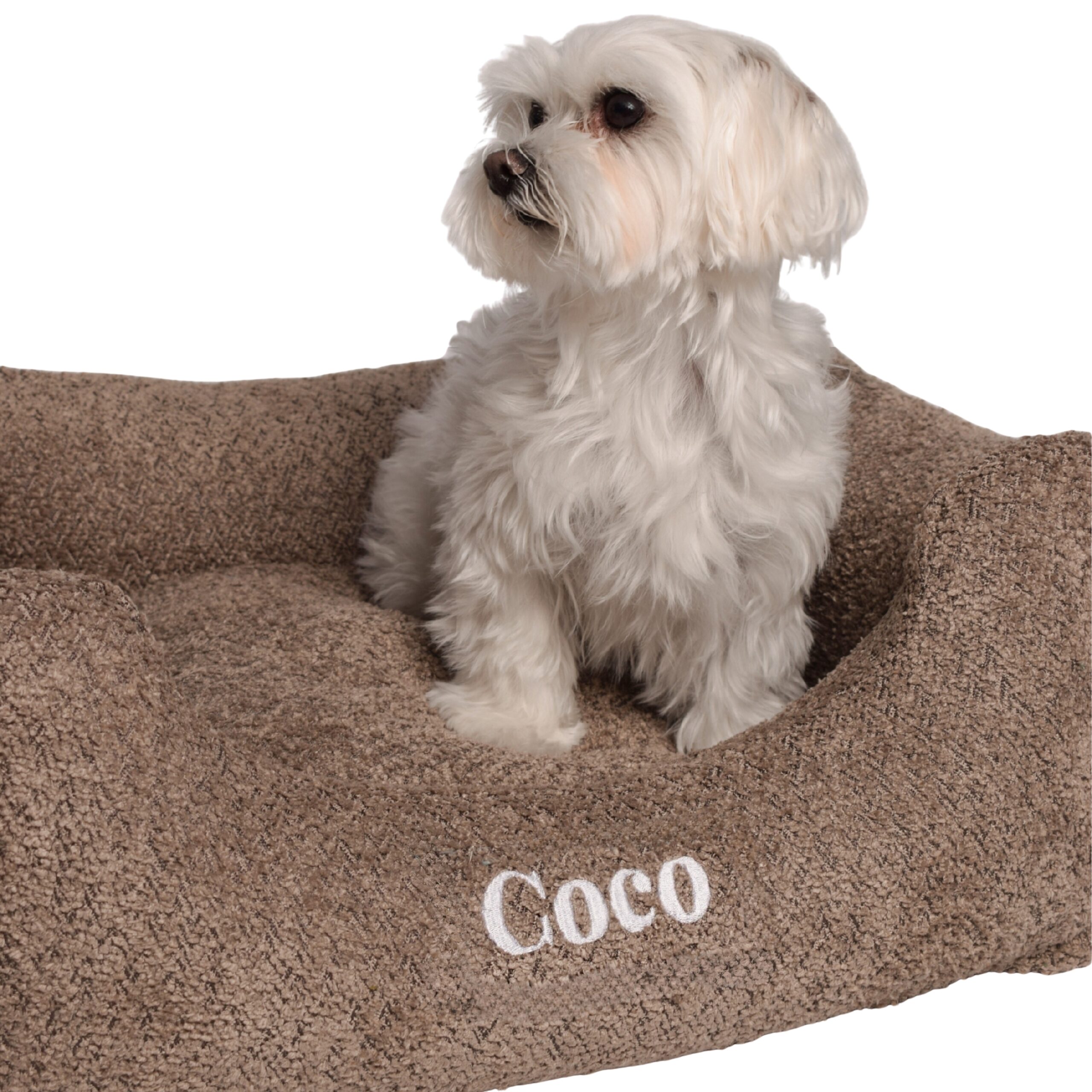Legowisko Como to elegancja i wygoda w jednym. Wykonane z bardzo mocnego materiału bouclé, zapewnia stylowy wygląd w każdym wnętrzu. Wypełnienie z wysokiej jakości kulki silikonowej gwarantuje doskonały komfort, idealnie dopasowując się do kształtu ciała Twojego pupila. Legowisko szyte jest z wyjątkowo mocnych poliestrowych nici, co zapewnia dodatkową wytrzymałość. Zdejmowany pokrowiec umożliwia łatwe pranie, a opcja personalizacji haftem imienia czyni je wyjątkowym dodatkiem dla Twojego pupila.
